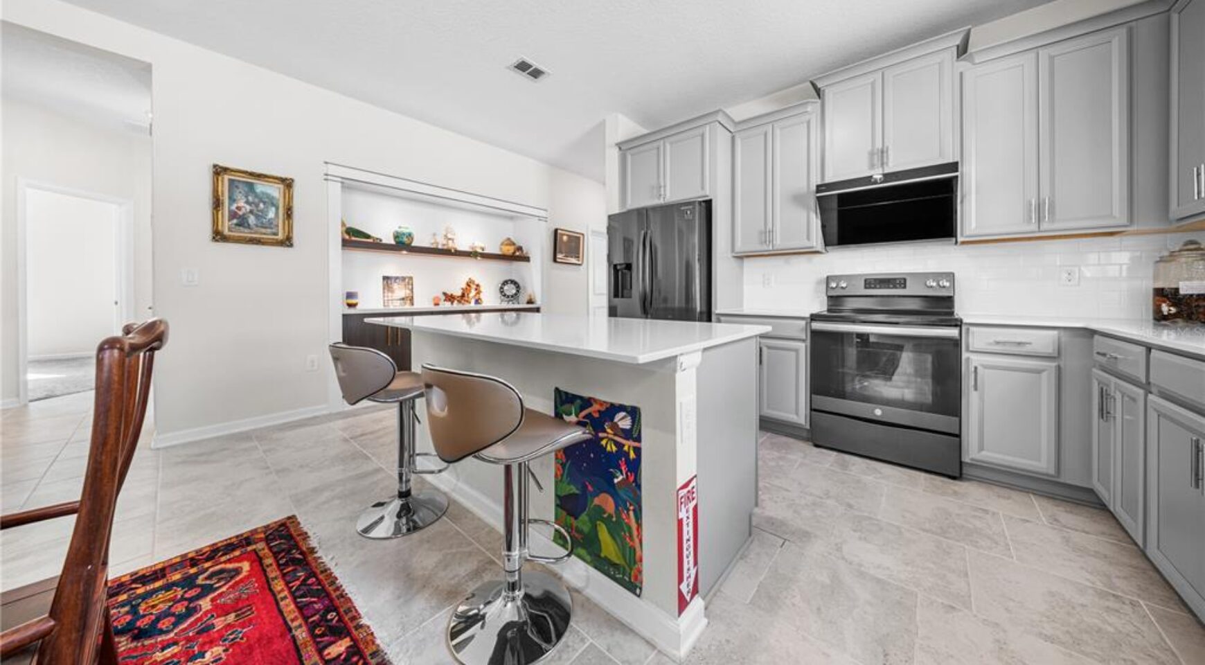 Welcome to The Lakes at Harmony – A Premier 55+ Gated Golf Community Enjoy the peaceful beauty of nature in this elegant 3-bedroom, 2-bath home perfectly situated on a premium conservation lot. Designed for comfort and style, this residence offers a seamless blend of modern living and Florida’s natural charm. Elegant Interiors & Open Living Step inside to find a bright, open-concept floor plan filled with natural light. The spacious living and dining areas flow effortlessly together, creating the perfect setting for both entertaining and everyday living. Neutral tones, crown molding, and upscale finishes add a touch of sophistication throughout. Stylish Kitchen & Comfortable Living The heart of the home is the gourmet kitchen, featuring 42-inch gray cabinetry, granite countertops, stainless steel appliances, and a large breakfast bar. Whether you’re hosting friends or preparing a quiet dinner at home, this kitchen offers the ideal balance of beauty and function. Tranquil Primary Suite The owner’s suite provides a peaceful escape with serene views of the surrounding conservation land. The ensuite bathroom includes dual vanities, a walk-in shower, and generous closet space. Two additional bedrooms offer flexibility for guests, hobbies, or an office. Outdoor Living with a View Step out onto the covered lanai and experience the best of Florida’s outdoor living. Overlooking lush conservation land, you’ll enjoy breathtaking views and frequent visits from deer, cranes, and birds from around the world. This private setting offers a daily connection to nature—peaceful, beautiful, and uniquely Harmony. Resort-Style Community Living Residents of The Lakes at Harmony enjoy access to a championship golf course, clubhouse, fitness center, heated pool, tennis and pickleball courts, and a full calendar of social activities. The gated community provides a maintenance-free lifestyle with lawn care and exterior pest control included. Surrounded by a vast 11,000-acre conservation preserve, Harmony offers a tranquil environment just 40 miles southeast of Orlando, 30 minutes to Orlando International Airport, and 40 minutes to Disney and the beaches. This home is more than just a place to live—it’s a lifestyle surrounded by nature, comfort, and community. Discover the serenity of The Lakes at Harmony, where every day feels like a getaway. Buyer to verify all room dimensions, square footage and HOA restrictions.