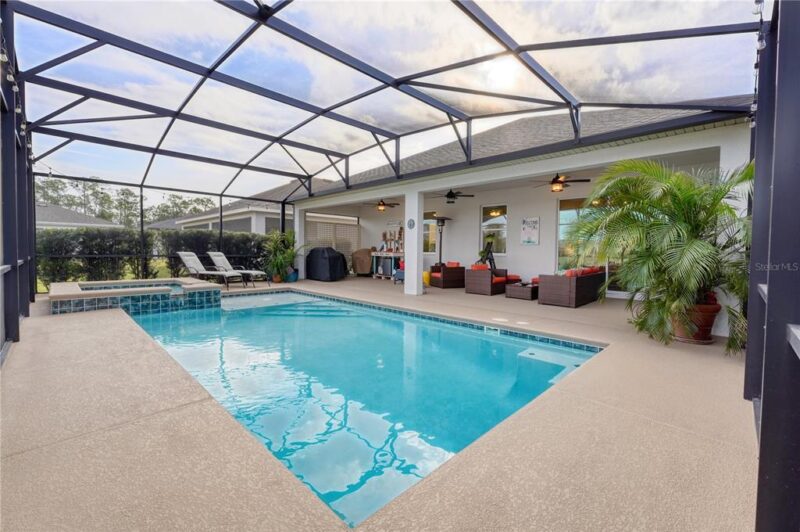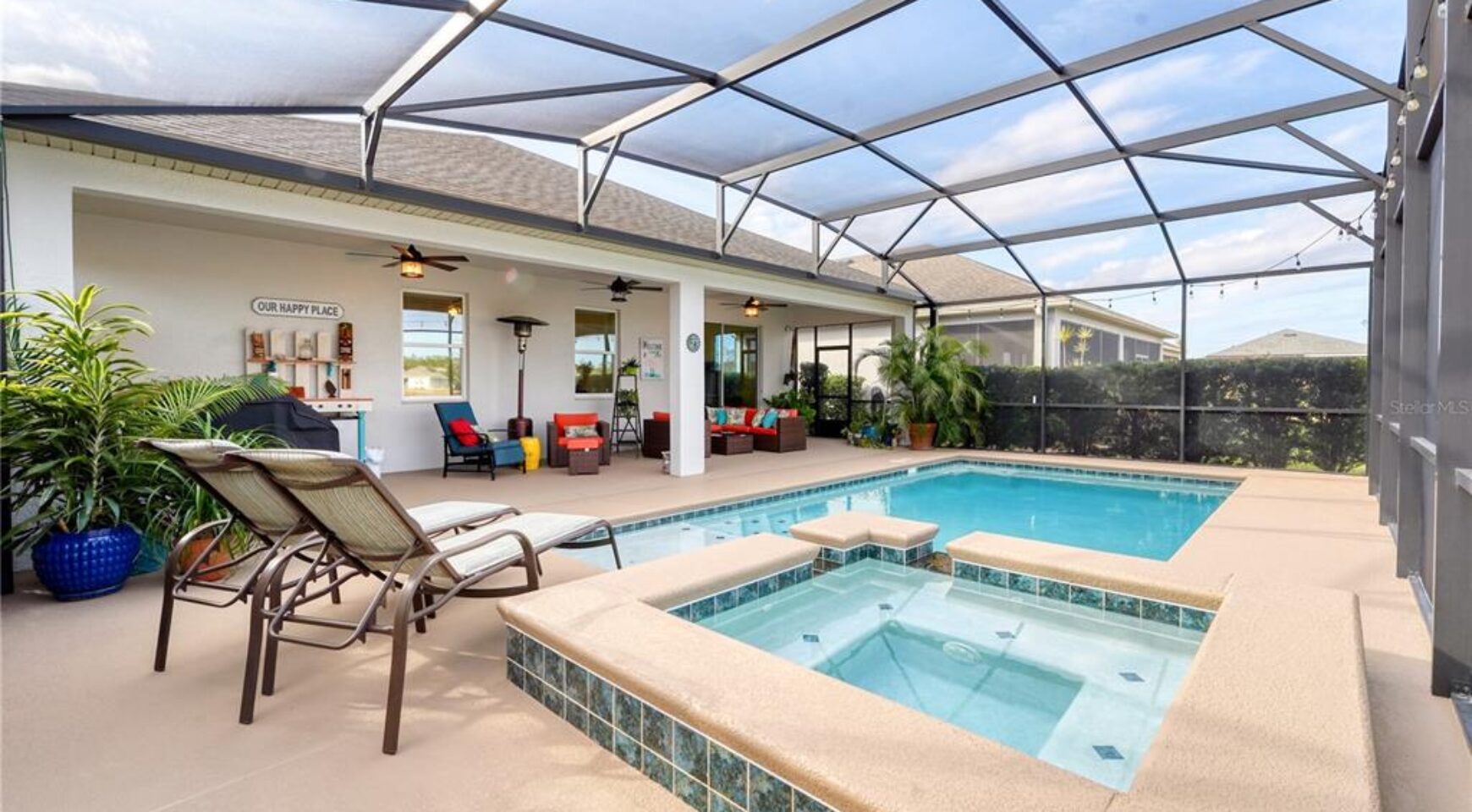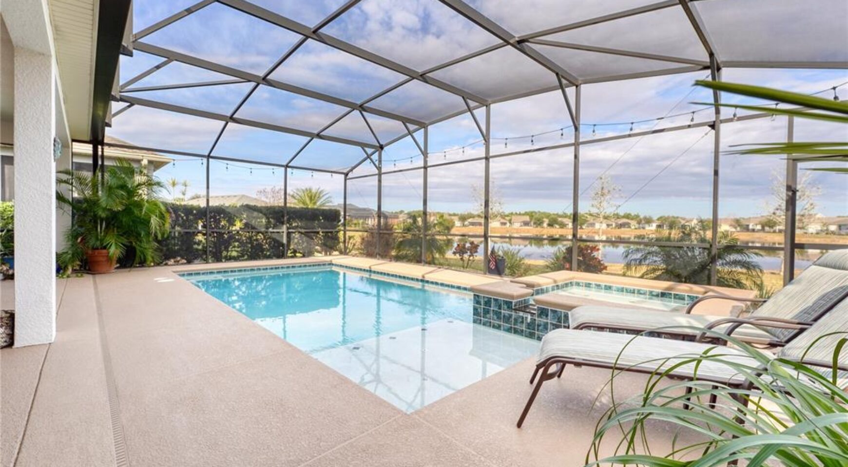 Welcome to this exceptional 1,918 sq ft pool home located in the prestigious The Lakes at Harmony, a highly sought-after 55+ active adult community renowned for golf, nature, and resort-style living. This beautifully designed residence offers 3 bedrooms and 2.5 baths and showcases a stunning gourmet kitchen with elegant white cabinetry, quartz countertops, a spacious center island, and abundant storage—ideal for both everyday living and entertaining. Step outside to an oversized screened lanai featuring a gorgeous pool and relaxing spa, creating a private outdoor oasis. Peaceful pond views enhance the serene setting, perfect for unwinding and enjoying Florida living at its best. Surrounded by conservation land and natural beauty, this home is a dream for nature lovers and golfers alike. The CDD bond is fully paid, providing exceptional long-term value. Residents of The Lakes at Harmony enjoy access to a championship golf course, clubhouse, fitness center, heated pool, tennis and pickleball courts, and a full calendar of social activities. This gated community offers a maintenance-free lifestyle with lawn care and exterior pest control included. Set within an 11,000-acre conservation preserve, Harmony delivers a tranquil setting just 40 miles southeast of Orlando, 30 minutes to Orlando International Airport, and 40 minutes to Disney and Florida’s beaches. This home is more than a residence—it’s a lifestyle defined by comfort, community, and natural beauty. Buyer to verify all room dimensions, square footage, and HOA restrictions.