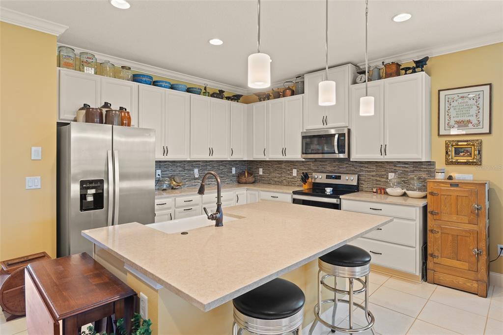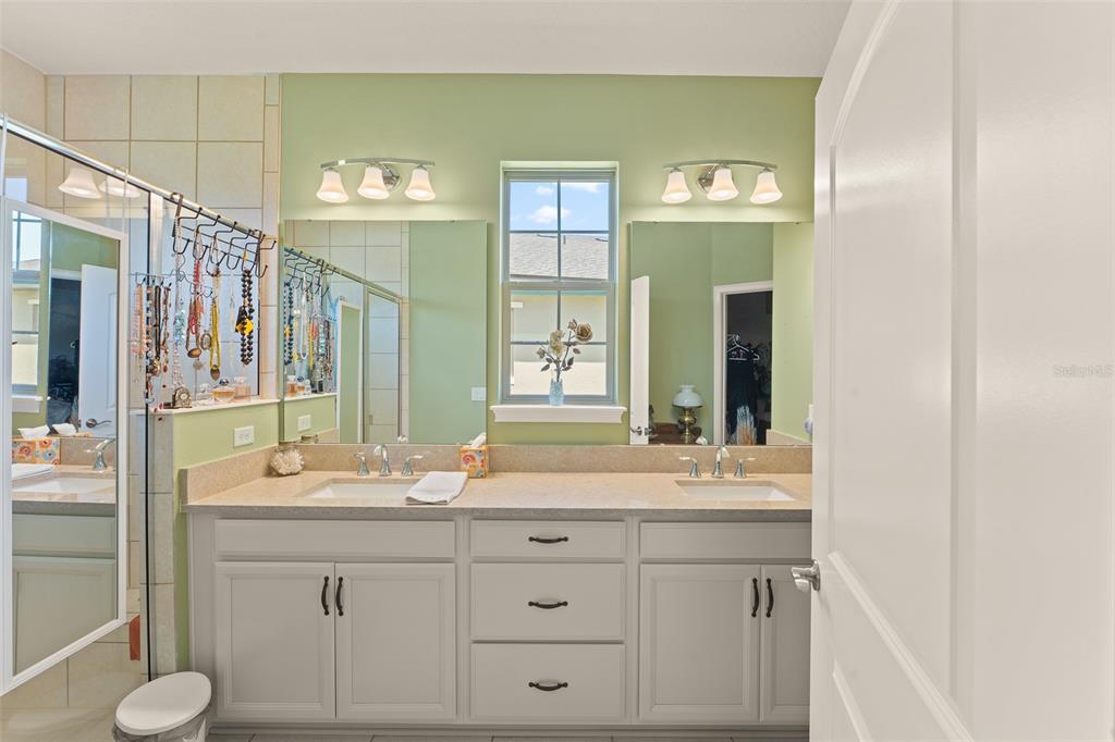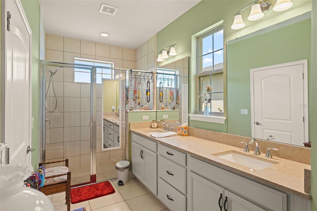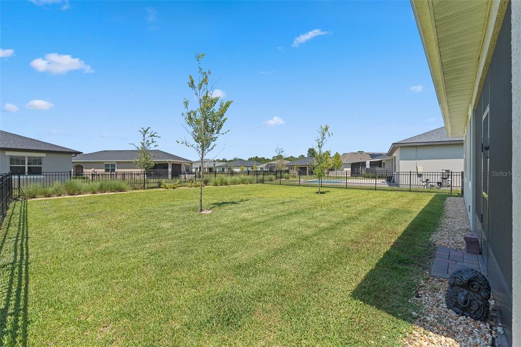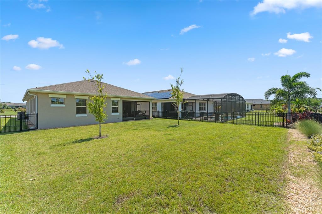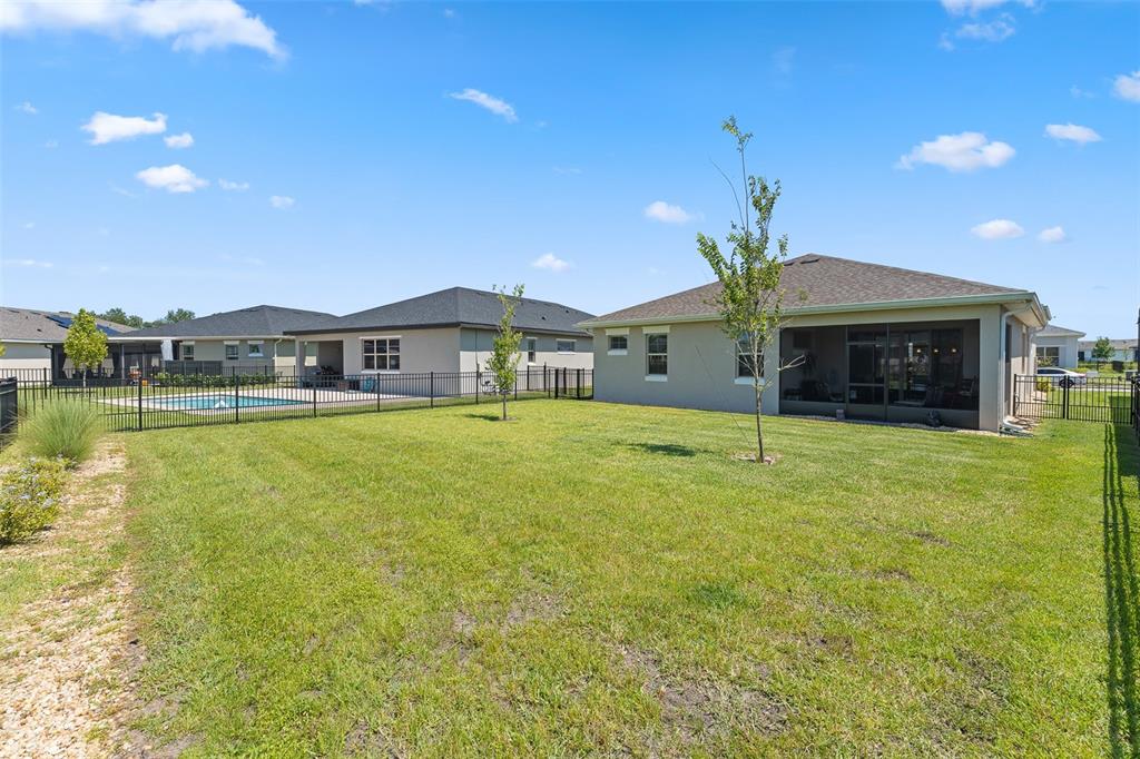 Welcome to The Lakes at Harmony an active adult gated golf community. Incredible opportunity to purchase a Jones Homes Verona model with the CDD BOND PAID OFF. This highly desired model is very seldom available. The spacious Verona unit features 3-bedrooms 3 baths with a private office/flex room with a one-story open floor plan great for entertaining. The exquisite gourmet kitchen features white quartz countertops, 42″ antique white cabinets and a large center island. The bright open living space has plenty of natural light which opens into a screened lanai overlooking a large fenced back yard. The roomy master bedroom features an en-suite including an oversized luxurious shower, double sinks and a large walk-in closet. This breathtaking, move-in ready home is upgraded with a stereo system, screened lanai, gutters, fenced back yard, cabinets in laundry room and antique white cabinets throughout. Residents of The Lakes enjoy an exclusive resort style clubhouse offering a zero-entry pool, fireplace, grill area, gathering room, activity room and gym. Residents enjoy pickleball, tennis, bingo, book club, chess, tai chi and many other wonderful activities. Lakes residents also have access to 2 other pools, walking/hiking trails, an 18-hole Johnny Miller golf course and access to 2 natural lakes, boat rentals, weekly Farmers markets and yearlong activities in Town Square. The Lakes at Harmony is peaceful and serene, boasting natural beauty wherever you look from amazing sunsets to deer, cranes and turkeys. The Lakes is located in Harmony, an 11,000-acre development, surrounded by a conservation preserve, and is 40 miles SE of Orlando, 30 minutes to Orlando Airport, and 40 minutes to Disney and the beaches. CDD bond/debt portion is paid in full – only O&M remains! Buyer to verify all room dimensions, square footage and HOA restrictions.