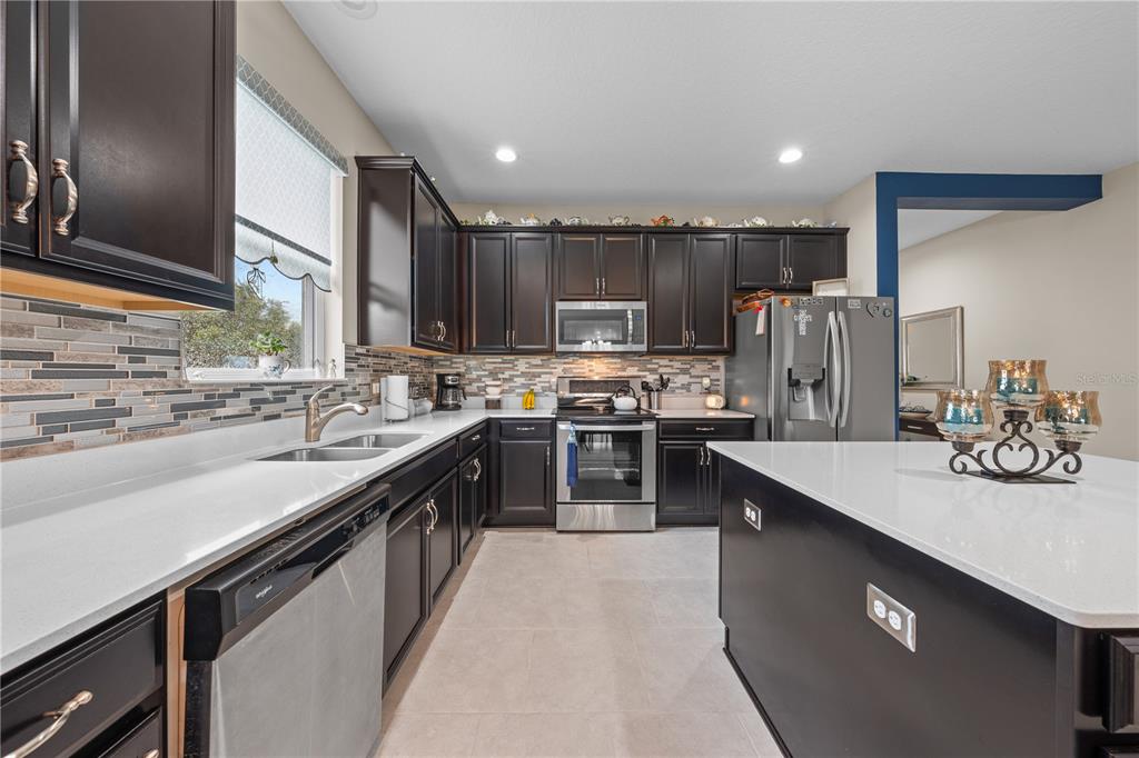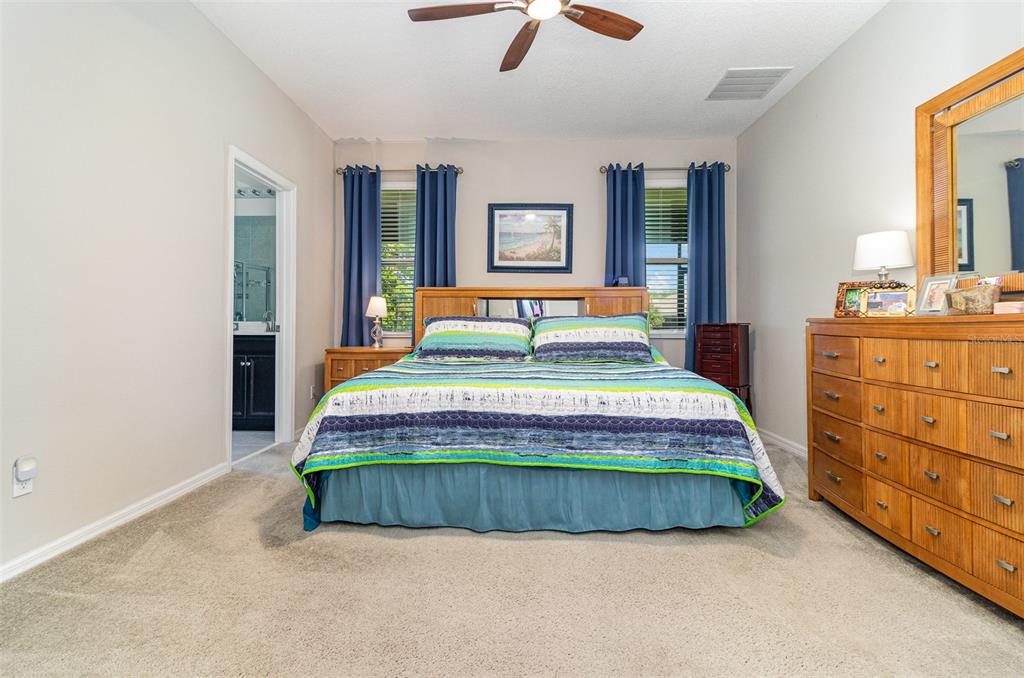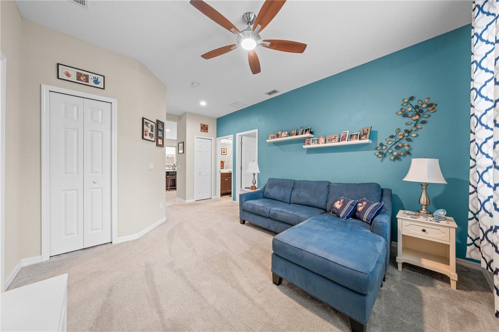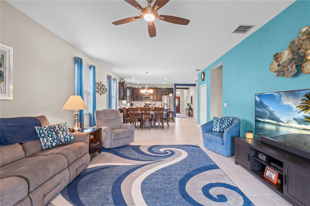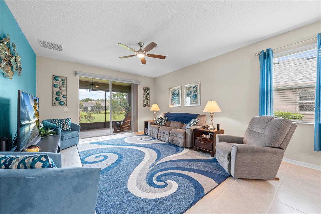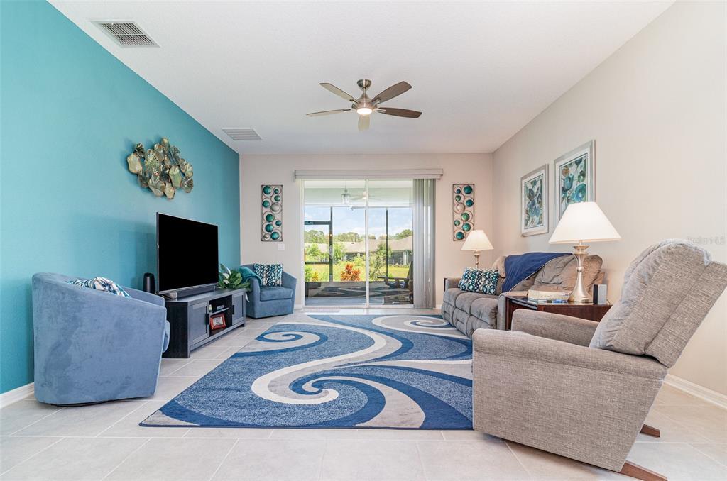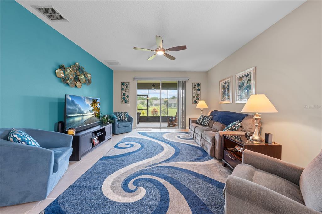 Spectacular waterview home located in a gorgeous gated golfing neighborhood. Welcome to The Lakes at Harmony, an active adult 55+ golf and nature lovers community. This spacious Clearwater unit features 3-bedrooms, 2 full baths, rec room and a flex room with a one-story open floor plan great for entertaining. This special home is located on a premium lot with beautiful pond views. The gourmet kitchen features expresso cabinets with white quartz countertops , 42″ cabinets, large center island and pantry. The bright open living space has plenty of natural light which opens into an oversized screened lanai (10′ x 40′). The roomy master bedroom features an en-suite including a luxurious tub and shower, double sinks and a large walk-in closet. This amazing home has many upgrades including solar, water softener, ceiling fans, screened lanai with tile floor and many more. Residents of The Lakes enjoy an exclusive resort style clubhouse offering a zero-entry pool, fireplace, grill area, gathering room, activity room and gym. Residents enjoy pickleball, tennis, bingo, book club, chess, tai chi and many other wonderful activities. Lakes residents also have access to 2 other pools, walking/hiking trails, an 18-hole Johnny Miller golf course, coffee shop, access to Buck Lake with complimentary boats and yearlong activities in Town Square. The Lakes at Harmony is peaceful and serene, boasting natural beauty wherever you look from amazing sunsets to deer, cranes and turkeys. The Lakes is located in Harmony Florida, an 11,000-acre development, surrounded by a conservation preserve, and is 40 miles SE of Orlando, 40 minutes to Disney and 30 minutes to Orlando Airport and Melbourne beaches. HOA pays for yard maintenance and exterior pest control. Buyer to verify all room dimensions, square footage and HOA restrictions.
