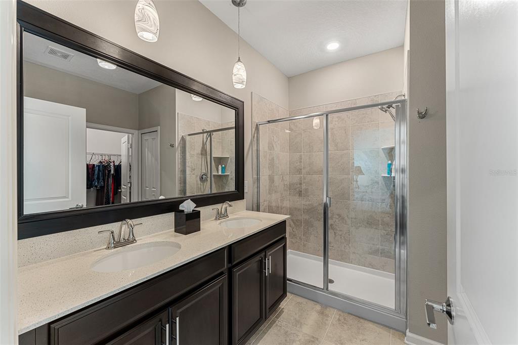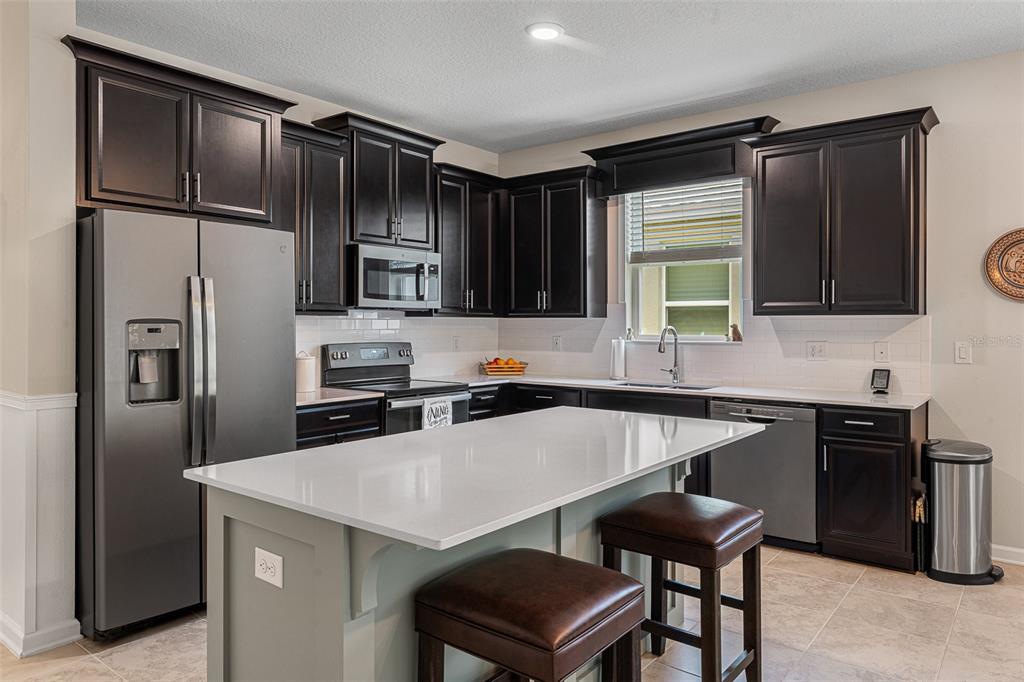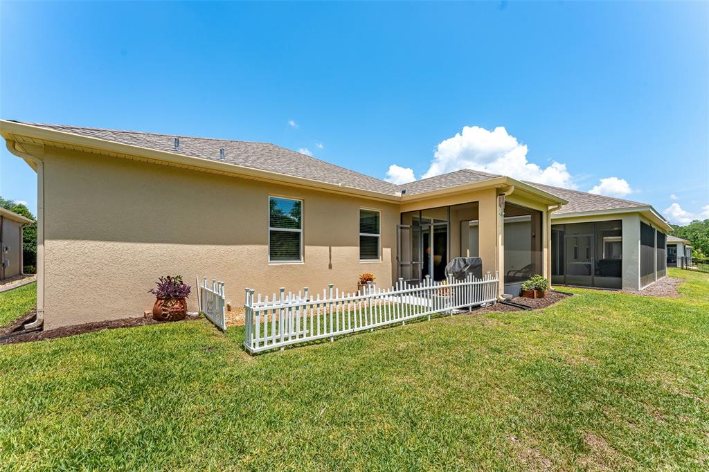 Welcome to The Lakes at Harmony an active adult 55+ golf community. The spacious Marco unit features 3-bedrooms 2.5 baths with a one-story open floor plan great for entertaining. The beautiful gourmet kitchen features white quartz countertops , 42″ cabinets, large center island and pantry. The bright open living space has plenty of natural light which opens into a screened lanai with views of conservation land. The roomy master bedroom features an en-suite including an oversized luxurious shower, double sinks and a large walk-in closet. This beautiful move-in ready home is upgraded with seamless gutters, screened lanai, wainscoting, valences, water softener/purifier and fresh paint. Residents of The Lakes enjoy an exclusive resort style clubhouse offering a zero-entry pool, fireplace, grill area, gathering room, activity room and gym. Residents enjoy pickleball, tennis, bingo, book club, chess, tai chi and many other wonderful activities. Lakes residents also have access to 2 other pools, walking/hiking trails, an 18-hole Johnny Miller golf course, access to 2 natural lakes, boat rentals, weekly Farmers markets and yearlong activities in Town Square. The Lakes at Harmony is peaceful and serene, boasting natural beauty wherever you look from amazing sunsets to deer, cranes and turkeys. The Lakes is located in Harmony, an 11,000-acre development, surrounded by a conservation preserve, and is 40 miles SE of Orlando, 30 minutes to Orlando Airport, and 40 minutes to Disney and the beaches. Buyer to verify all room dimensions, square footage and HOA restrictions.